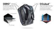 CERO™ Fabric: Tela tejida con hilo reciclado, hasta 2 veces más resistente al desgarro y 1.5 veces más impermeable que otras mochilas del mercado. Hecha de PET reciclado y reciclable.