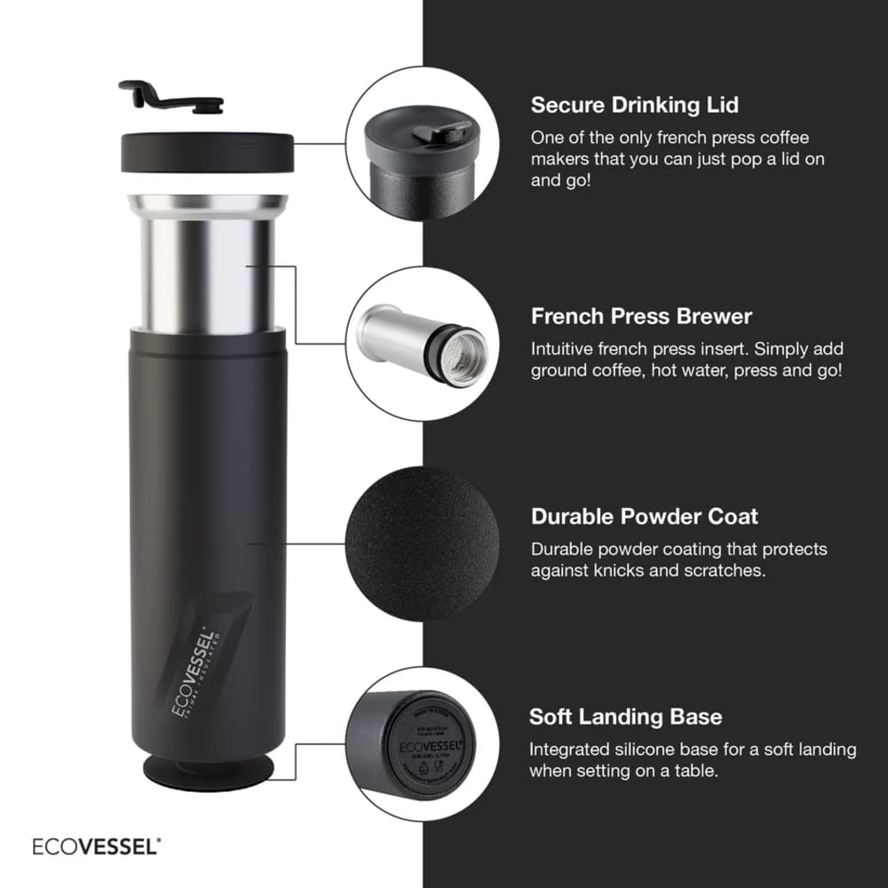 Termo y Prensa Francesa Ecovessel Coffee Presse To Go - 15oz black